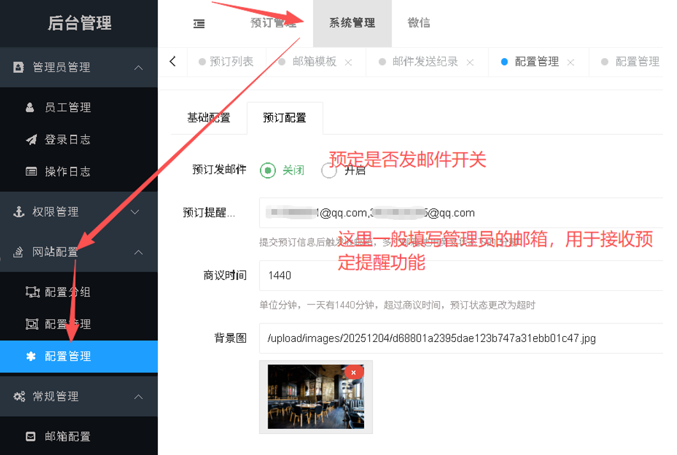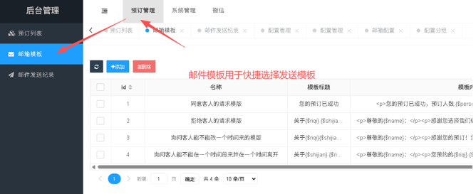 餐厅预约订座系统通过邮件实现通知功能