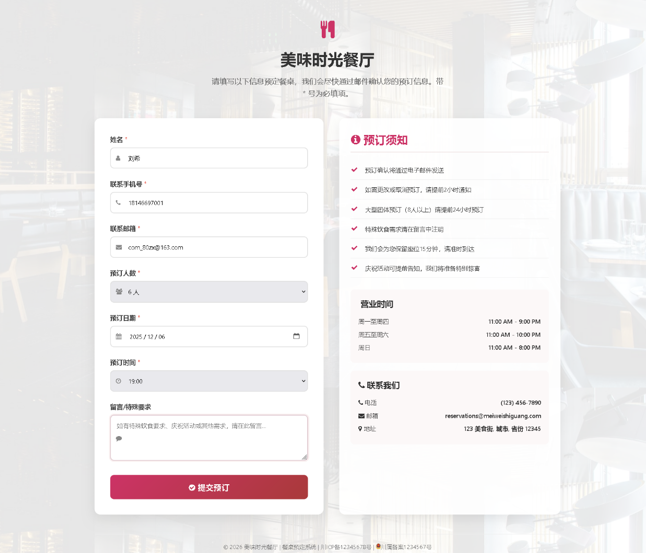 餐厅预约订座系统通过邮件实现通知功能,通过提交预定信息后,该系统功能可灵活适配于任何希望通过邮件发送通知的行业